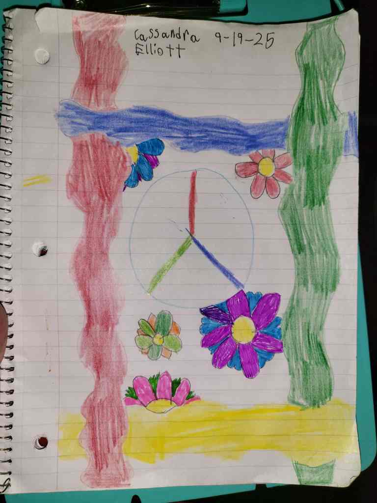 A picture of Their sibling Cassie, It is titled Feesh. We love it. What are you drawing today??