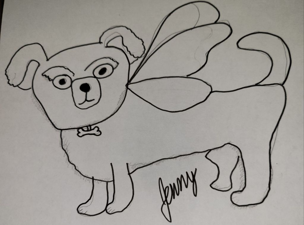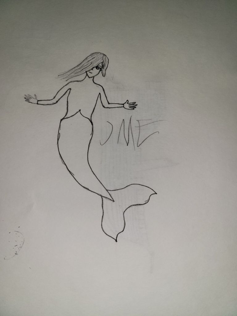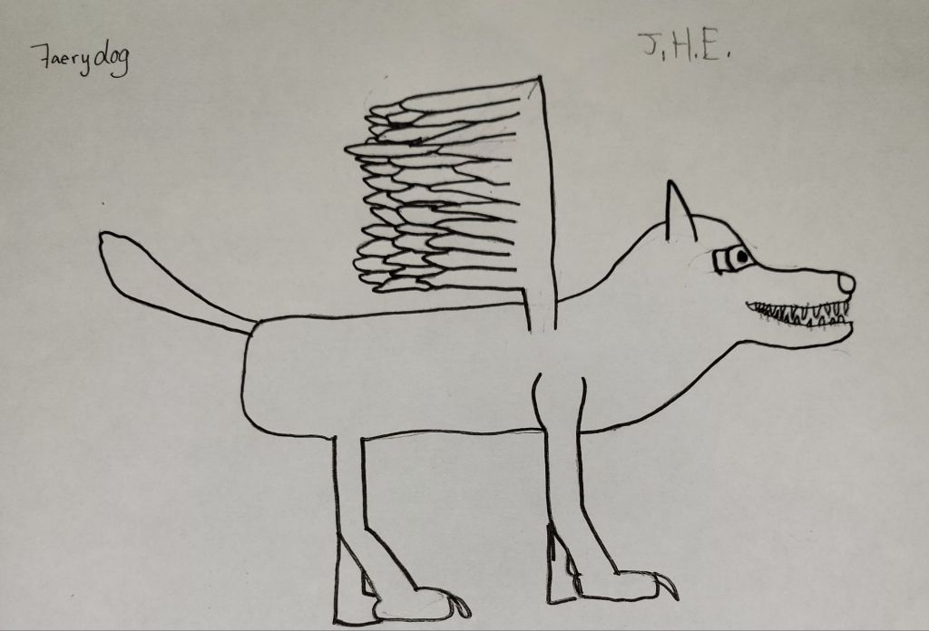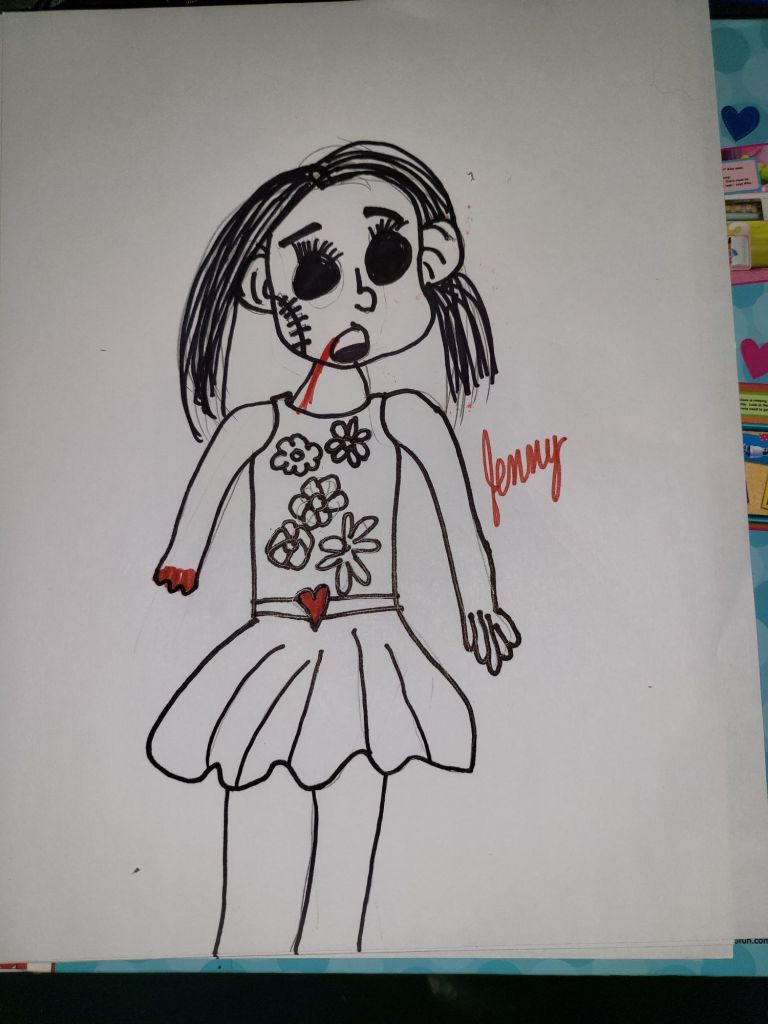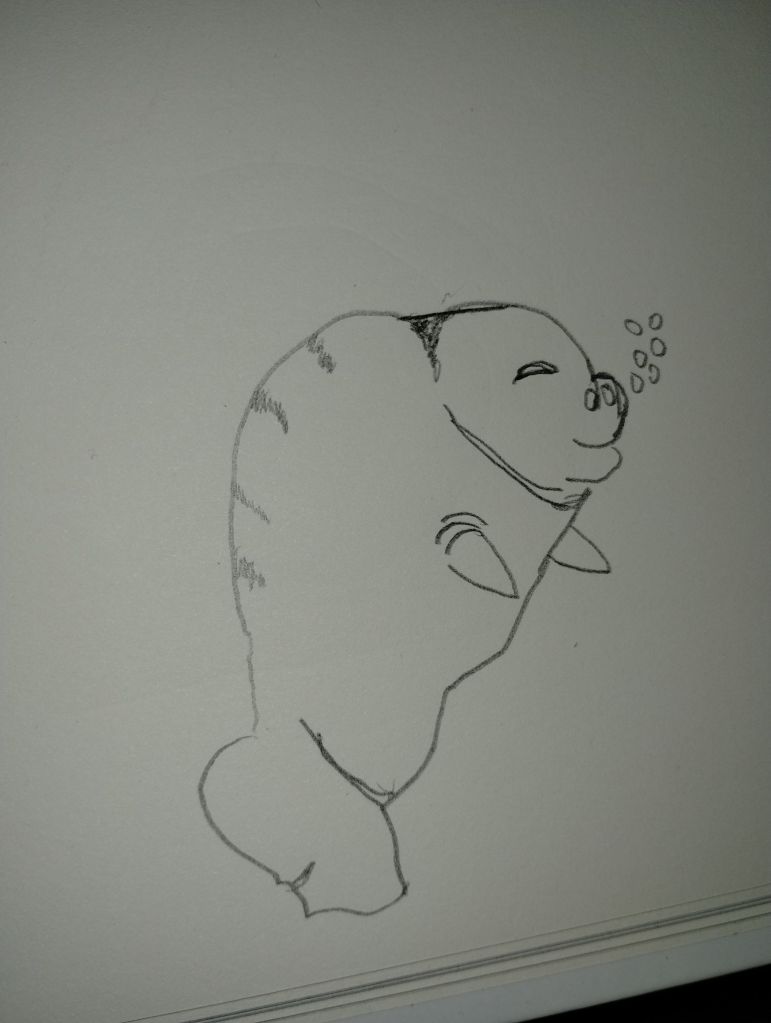 A picture of Their sibling Cassie, It is titled Feesh. We love it. What are you drawing today??