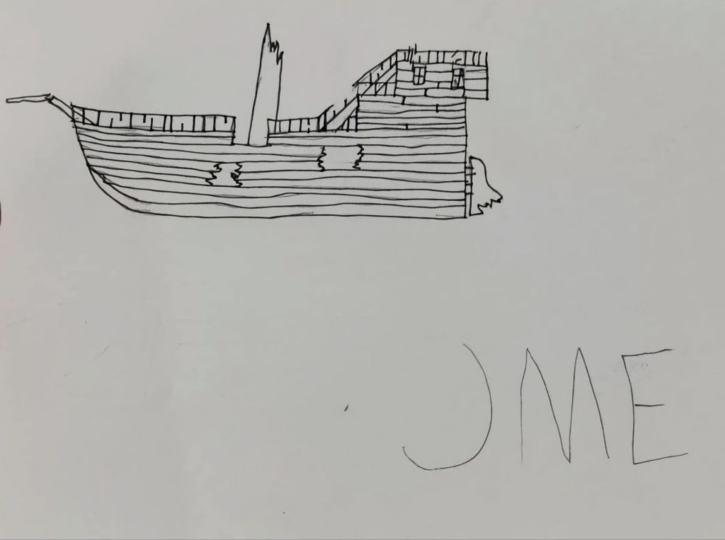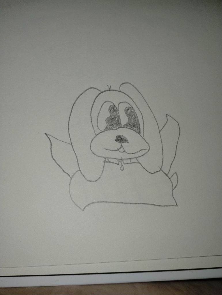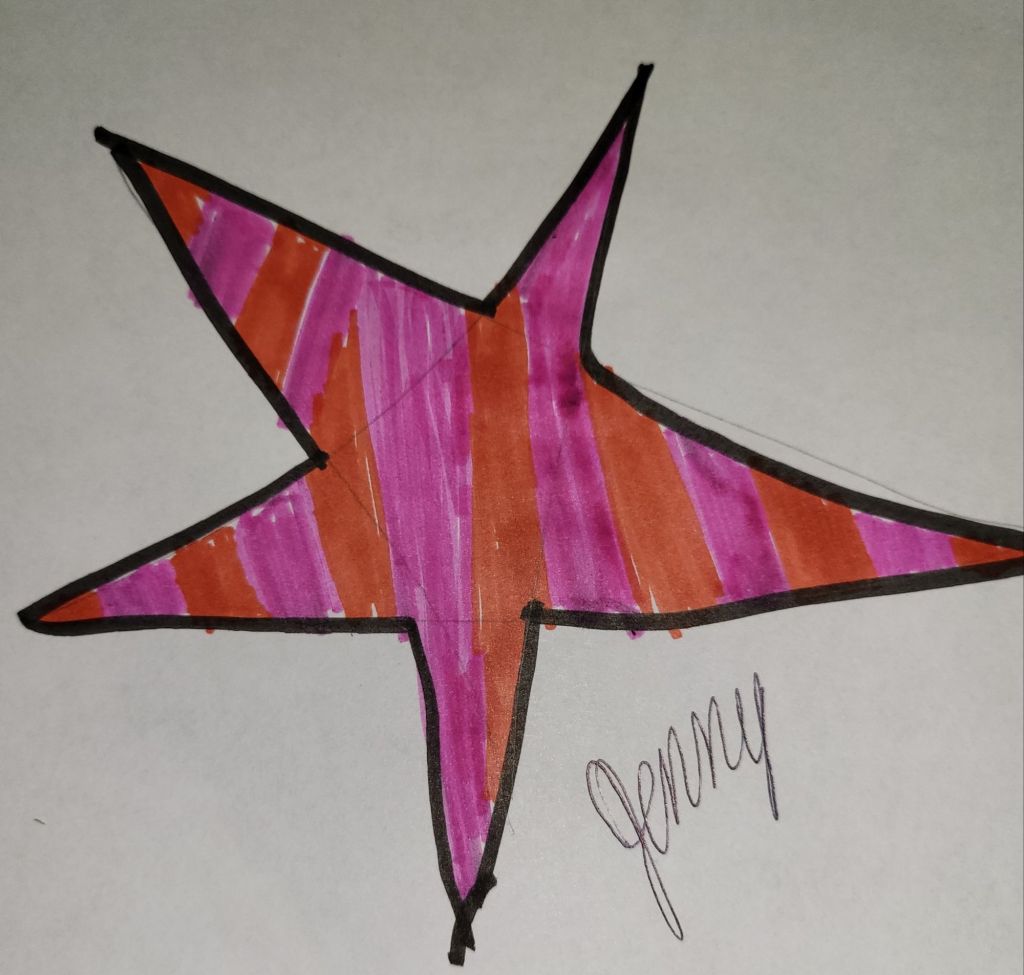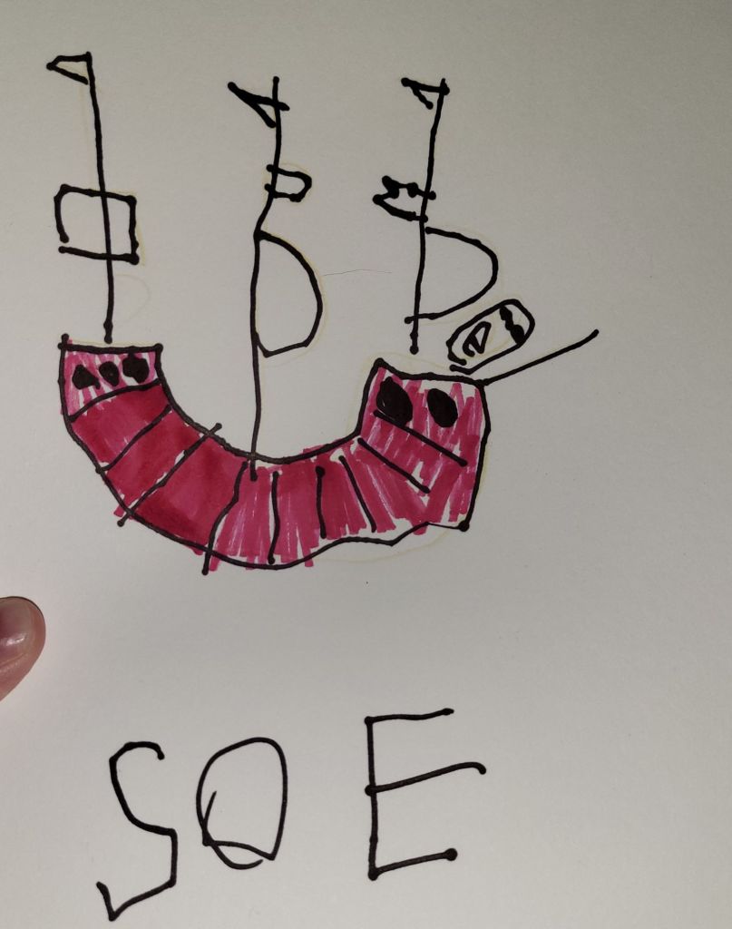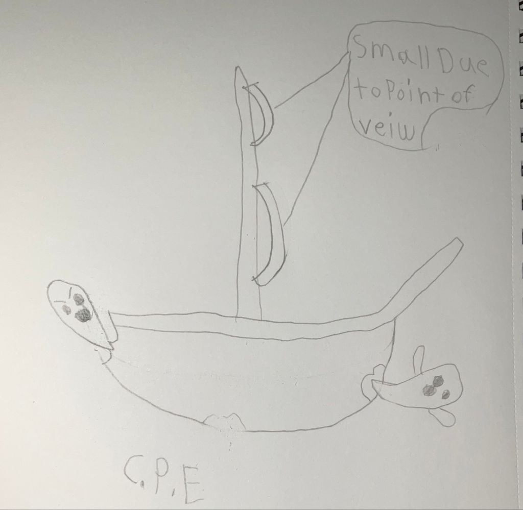 A picture of Their sibling Cassie, It is titled Feesh. We love it. What are you drawing today??