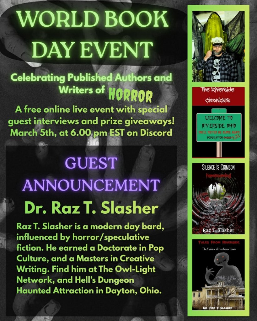 Join us for a live online event on World Book Day, March 5th at 6.00 pm EST on Discord. Featuring guest interviews and giveaways!